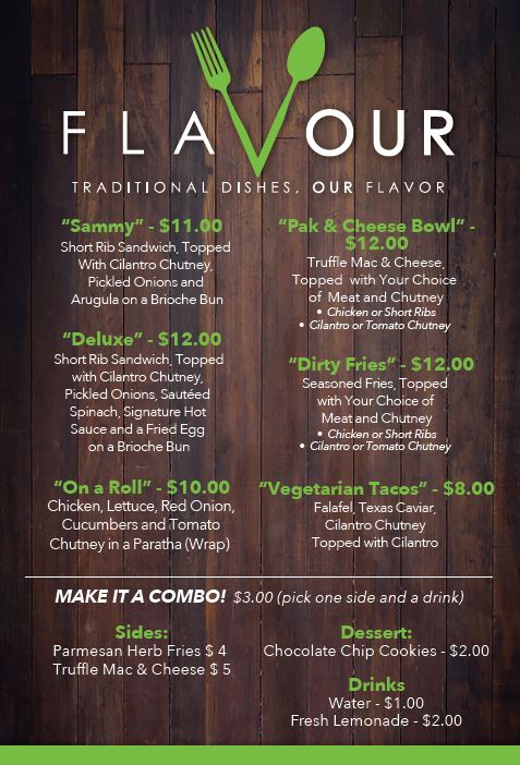 We offer customized menus to ensure your catered event is as unforgettable as we are. One Love Food Truck menu. Includes chopped romaine cucumber tomato avocado radish onion pico de mango one love vinaigrette on a 9x13 inch platter serves 4-6.